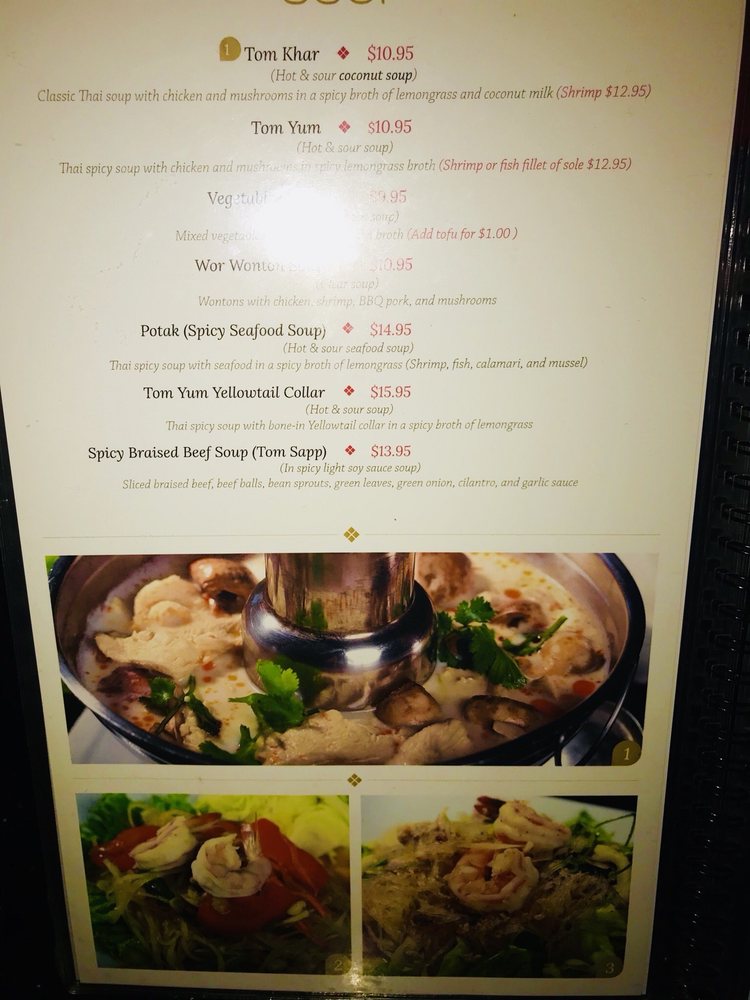 Hot and sour soup. Thai spicy soup with 16 oz. bone-in yellowtail collar in a spicy broth of lemongrass. Spicy.