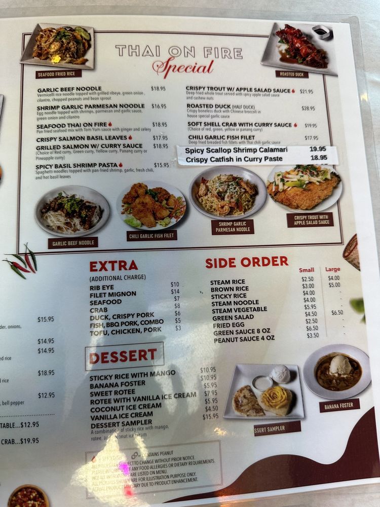 Pan-fried crispy catfish (bone-in) with Thai curry sauce. Spicy.